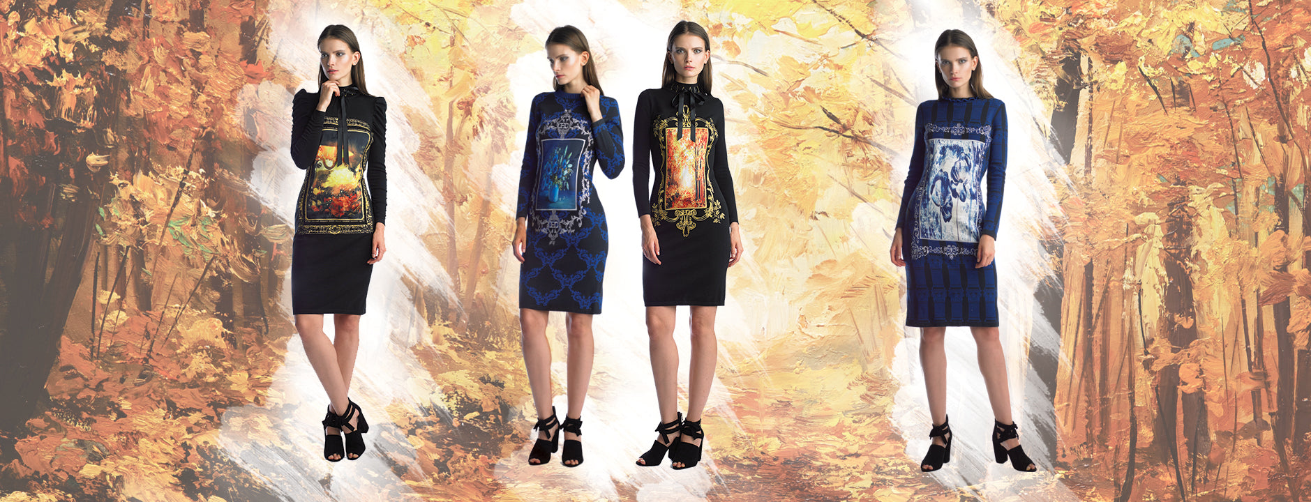 Embellishment, embroidered frame and art gallery painting prints make every garment artistic. The design remains renaissance and modern. Embellishment, embroidered frame and art gallery painting prints make every garment artistic. The design remains renaissance and modern.
